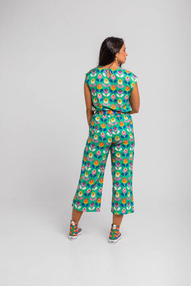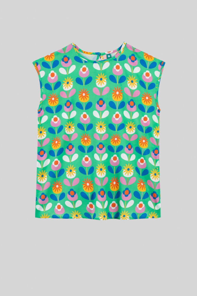 Ανθισμένο: Άφησε το μπουμπούκι και άνθισε – Αμάνικο πράσινο φλοράλ τοπ: Στρογγυλή λαιμόκοψη με κλείσιμο με κουμπιά στο πίσω μέρος και αμάνικο σχέδιο. Κατασκευασμένο από ρέον ύφασμα. – 100% Πολυεστέρας.