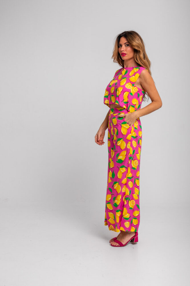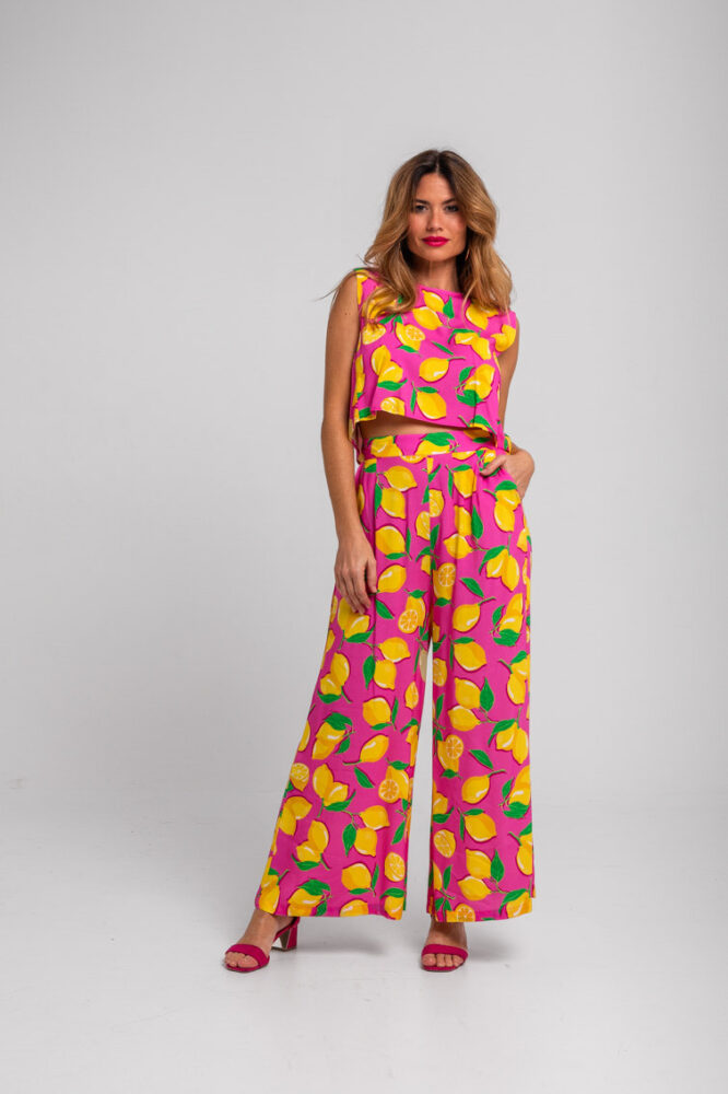 Crop τοπ ροζ με lemon print – Limoncello LOLINA