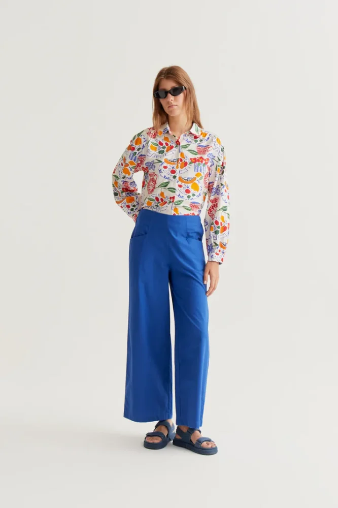 Ελαφρύ κρεπ πουκάμισο με πλούσιο τύπωμα. Γιακάς με πέτο και μακριά μανίκια με κουμπωτές μανσέτες. Κλείσιμο με λευκά κουμπιά μπροστά. Χαμηλοί ώμοι. Το μοντέλο έχει ύψος 177 εκ. και φοράει μέγεθος S.