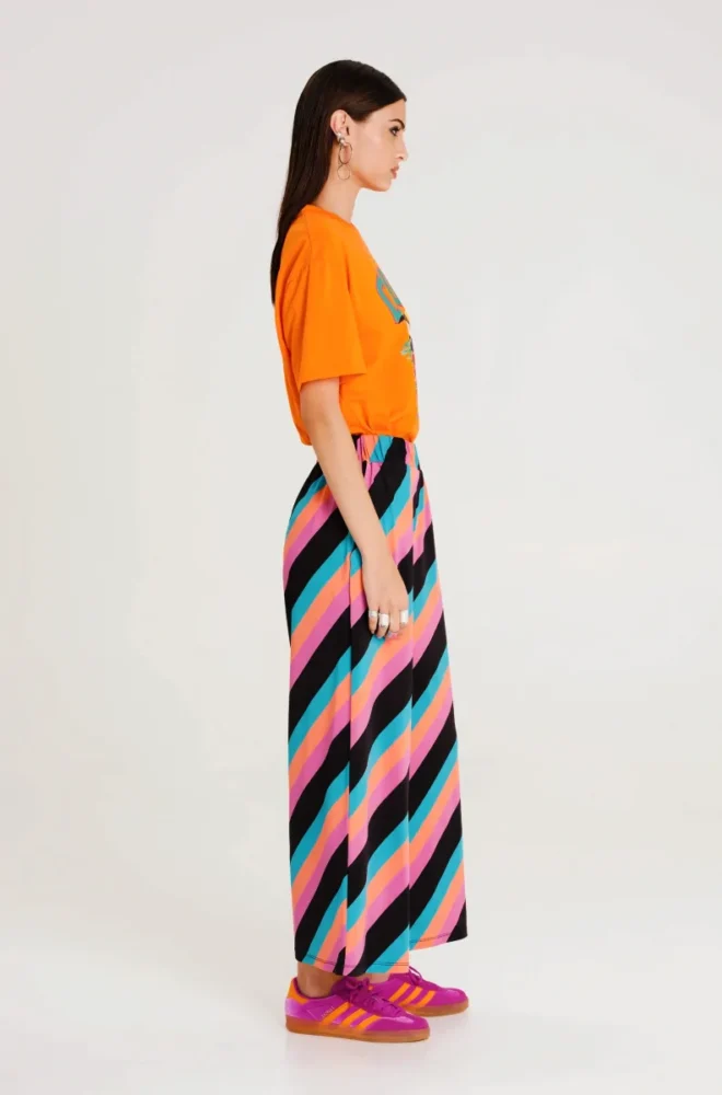 Το Passage Pants είναι ένα άνετο pyjama-style παντελόνι. Είναι φτιαγμένο από μαλακό, ελαστικό jersey ύφασμα και έχει λάστιχο στη μέση για εύκολη εφαρμογή. Έχει all-over print με playful ρίγες και την υφαντή ετικέτα P+C. Τα έντονα χρώματά του συνδυάζονται εύκολα με tops όπως τα Wisdom Sweaters και τα Avian T-Shirts.