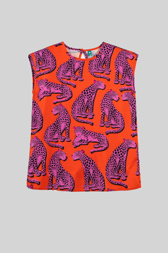 Μπλούζα με στρογγυλή λαιμόκοψη, κλείσιμο με κουμπιά στο πίσω μέρος και αμάνικο σχέδιο. Κατασκευασμένη από αέρινο ύφασμα. – 100% Πολυεστέρας.