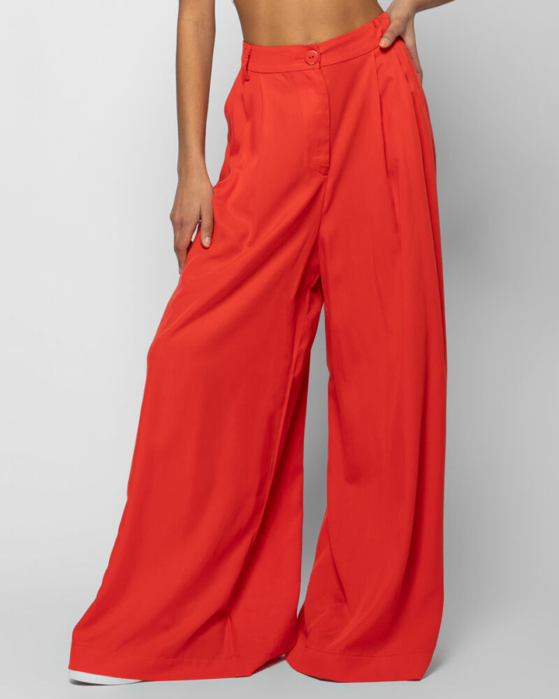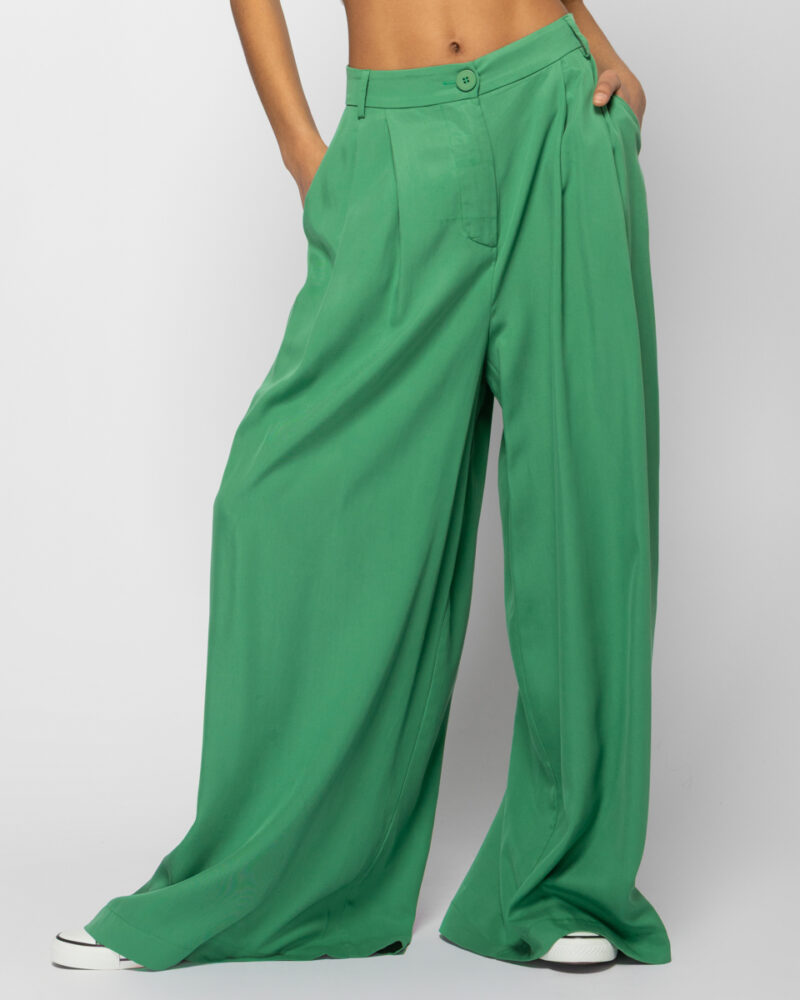 Ψηλόμεση παντελόνα με φαρδιά μπατζάκια, πιέτες & πλαϊνές τσέπες.