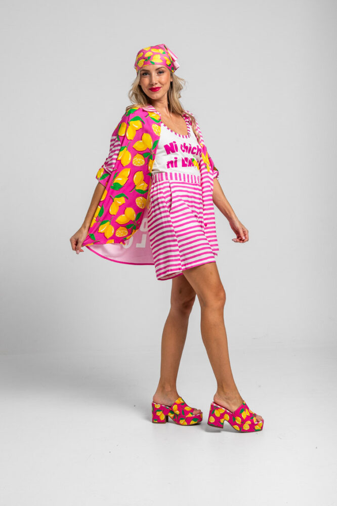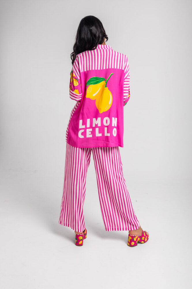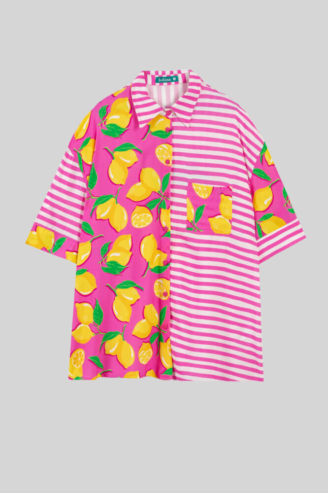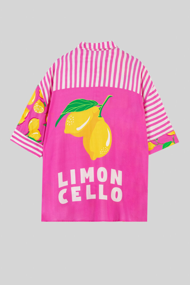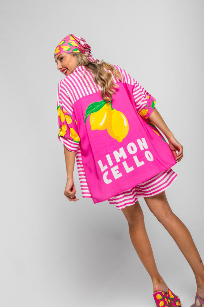 Limoncello: Πικάντικο, πλούσιο και γεμάτο γεύση – Pink Lemon Safari Shirt: Ελαφρύ πουκάμισο. V-λαιμόκοψη. Κλείσιμο με κουμπιά μπροστά. Κοντά μανίκια με ρολό. – 100% βισκόζη.
