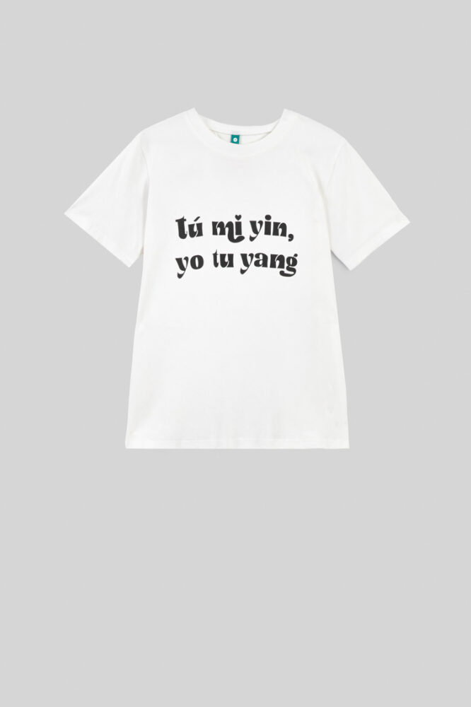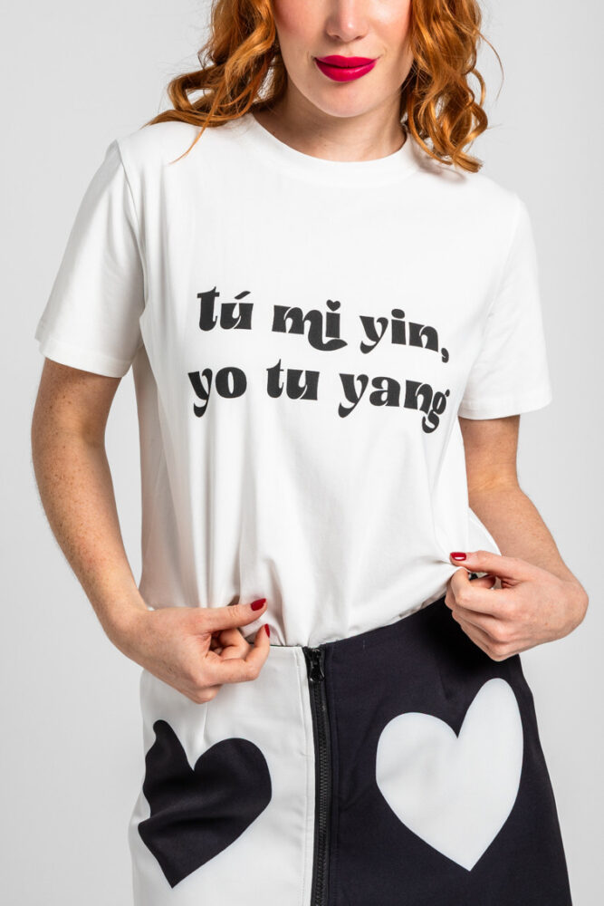 Γιν Γιανγκ: Γίνε το γιν μου και εγώ το γιανγκ σου – Unisex λευκό μπλουζάκι με την επιγραφή “Γίνε το γιν μου”, με ίσιο κόψιμο, στρογγυλή λαιμόκοψη και κοντά μανίκια . – 95% βαμβάκι και 5% ελαστάνη.