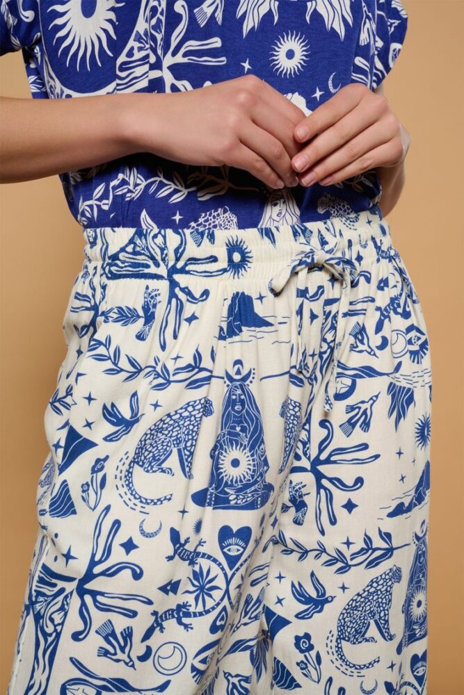 Παντελόνι με φαρδιά γραμμή και ρευστή σιλουέτα και τσέπες. Ελαστική μέση με ρυθμιζόμενο κορδόνι.