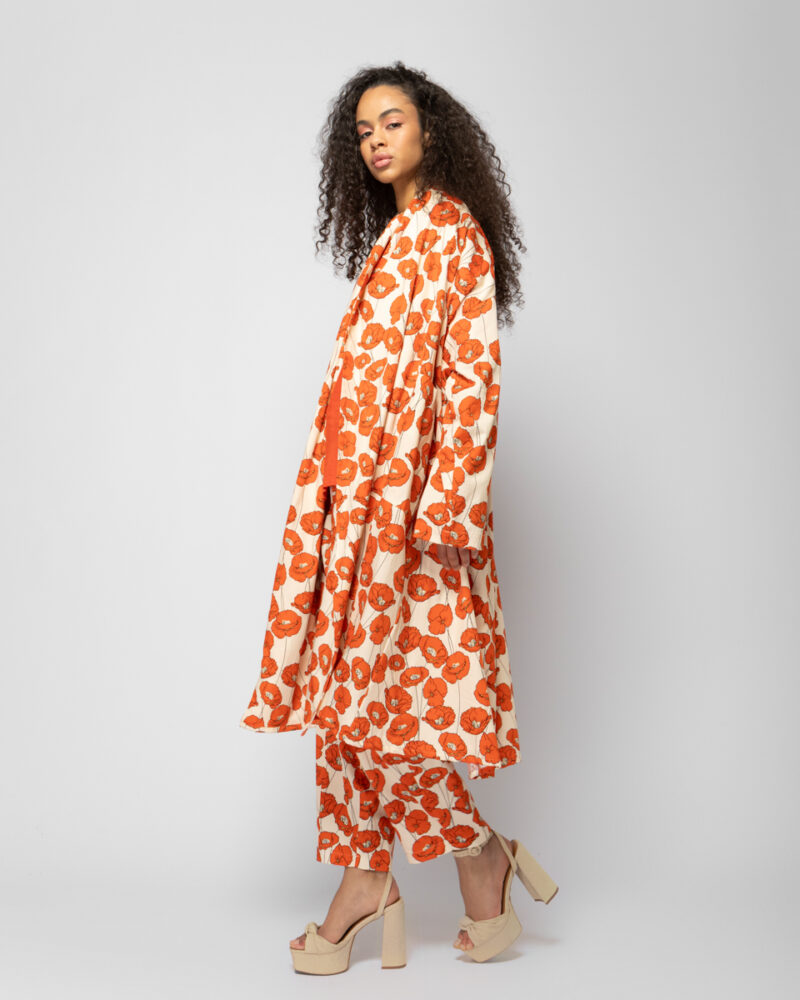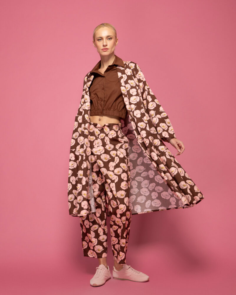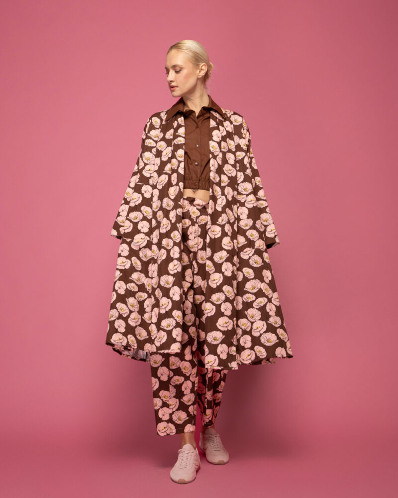 Μακριά βαμβακερή ζακέτα με τσέπες σε floral print.