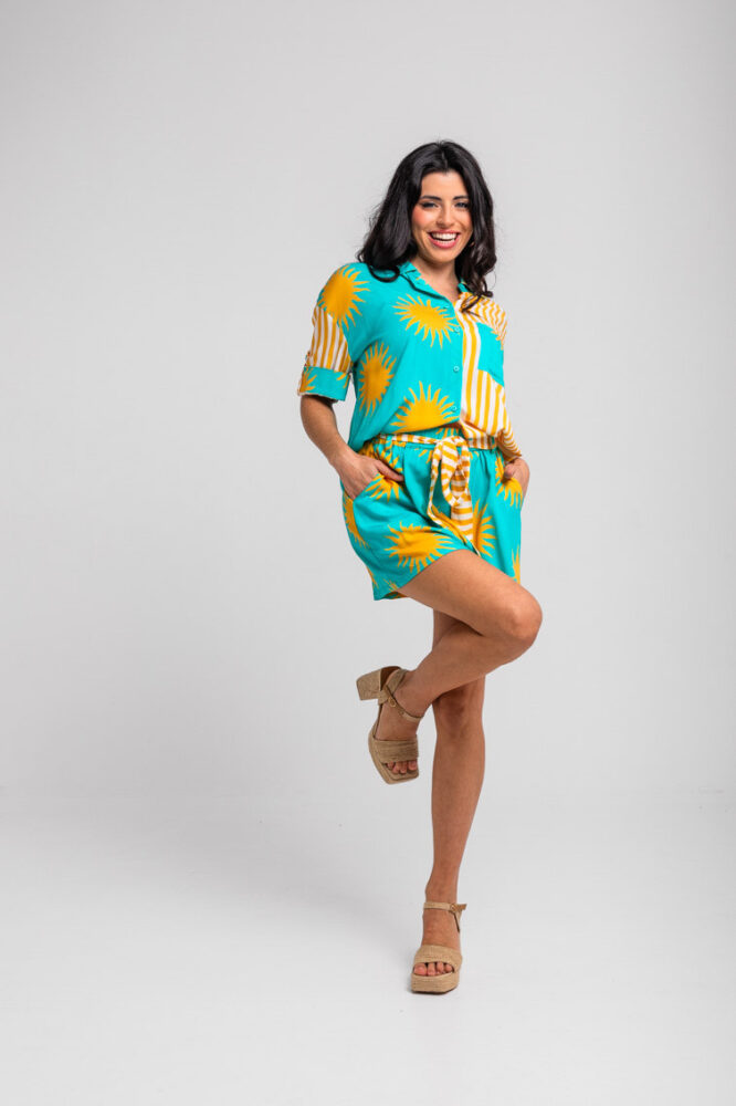 Τυρκουάζ πουκάμισο σαφάρι με κίτρινους ήλιους – Oh Sole mio LOLINA