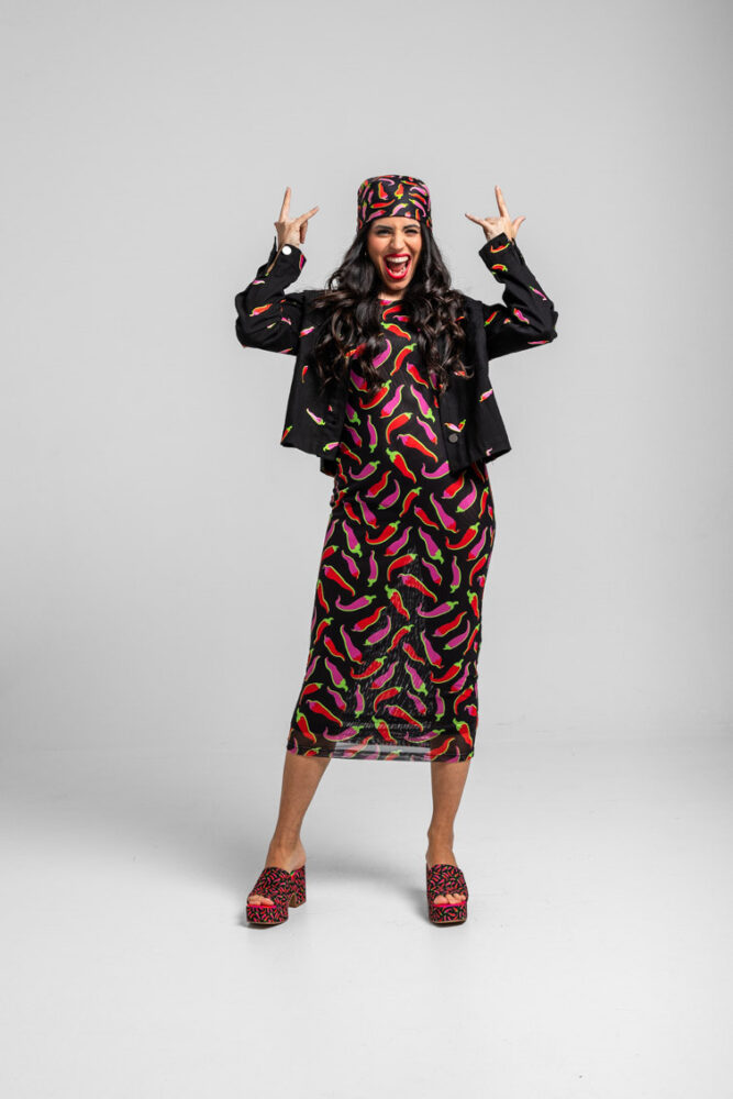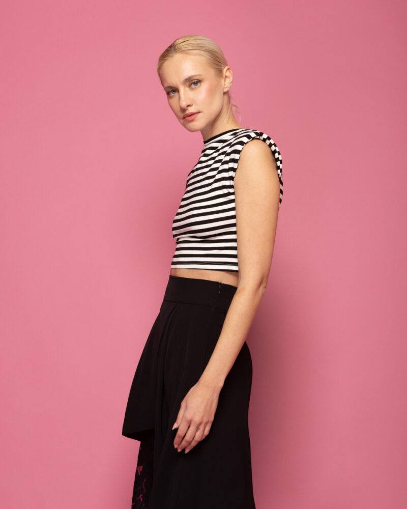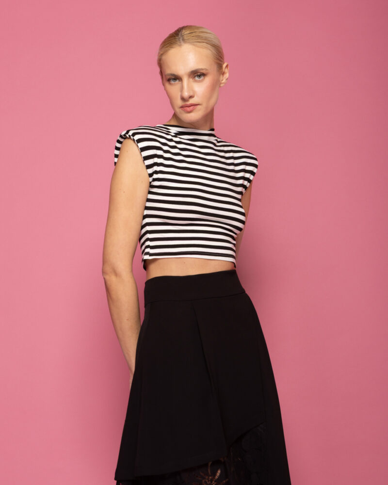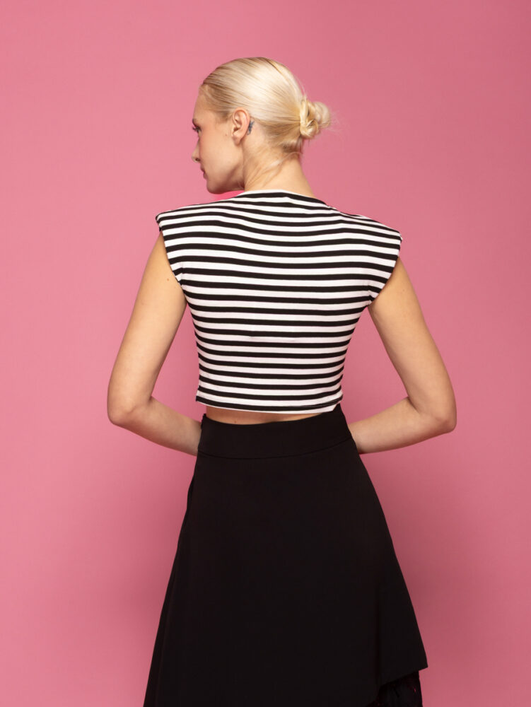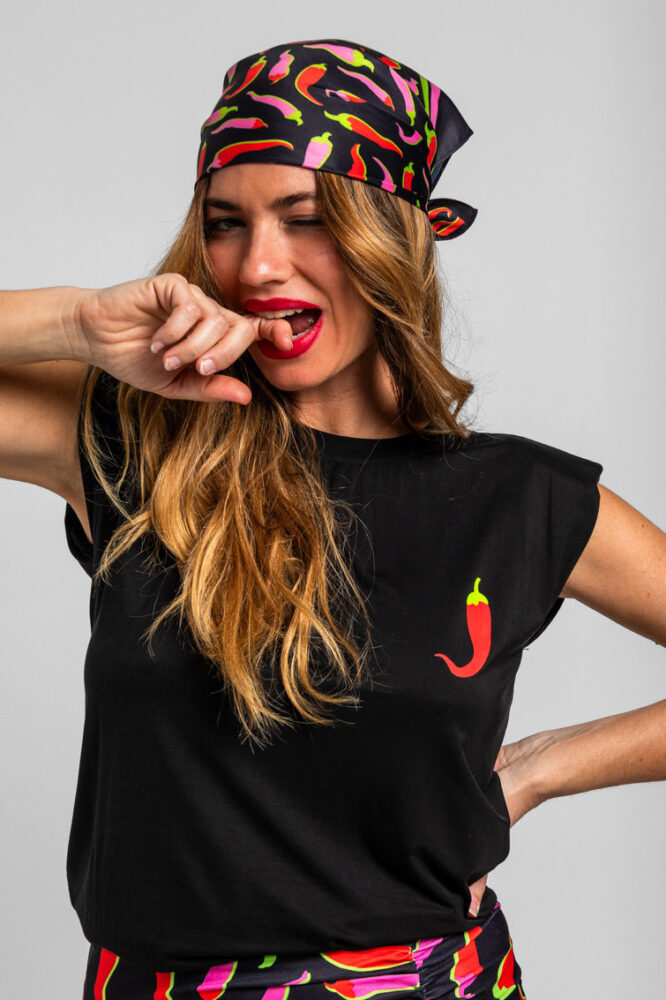 Μαύρο αμάνικο τοπ με βάτες και πιπεριές τσίλι LOLINA