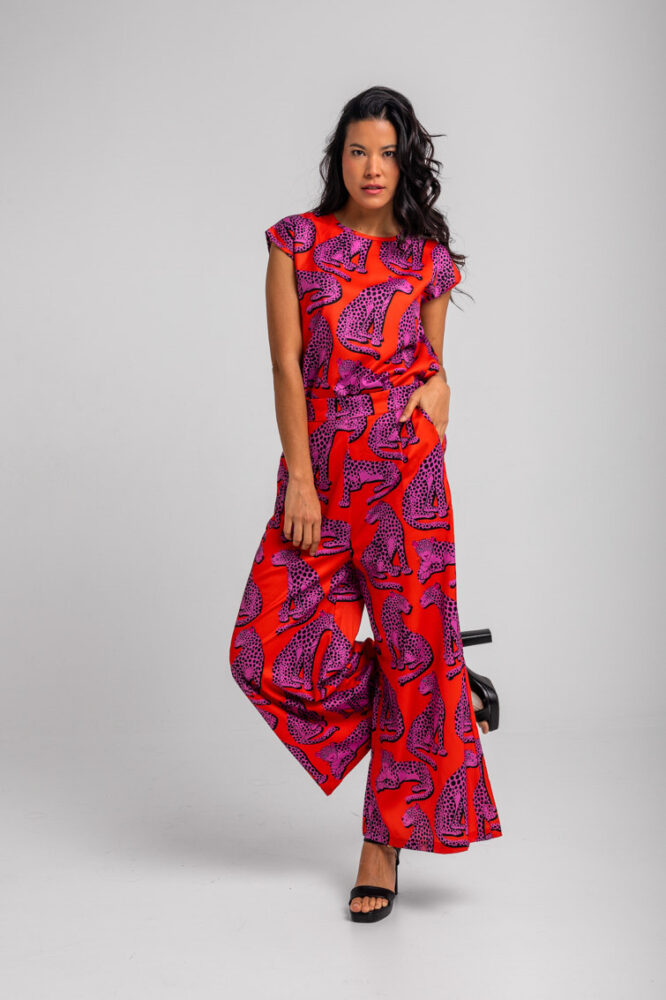 Πορτοκαλί μπλούζα με μωβ πάνθηρες LOLINA