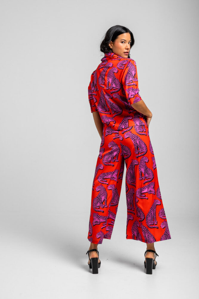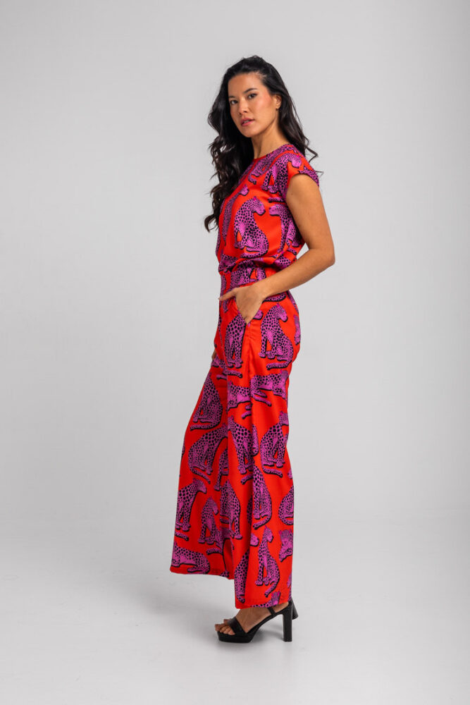 Πορτοκαλί παντελόνα με μωβ πάνθηρες LOLINA
