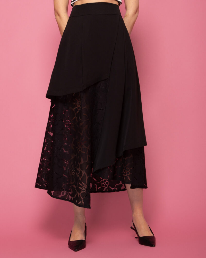 Ψηλόμεση μαύρη φούστα με δαντέλα Sour/lou/lou