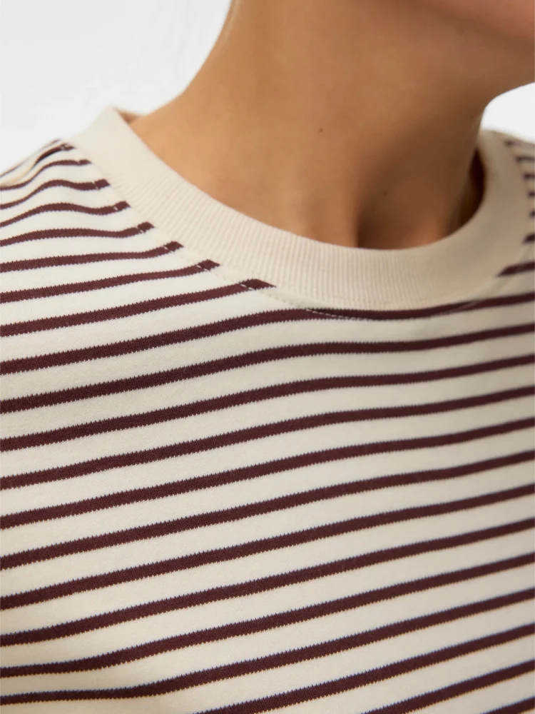 T-shirt ριγέ μπεζ με καφέ VERO MODA