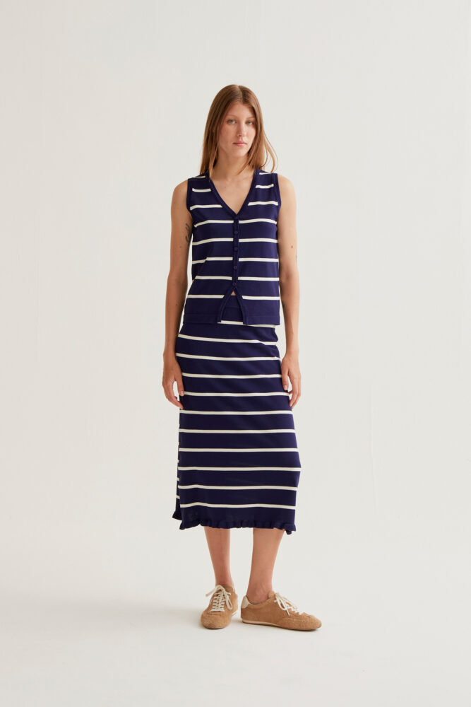 Knitted skirt with navy and white striped print COMPANIA FANTASTICA