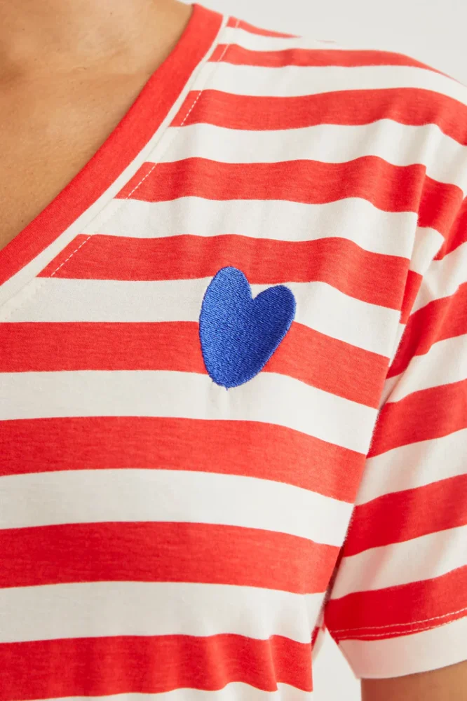 T-shirt with red striped print and embroidered heart COMPANIA FANTASTICA