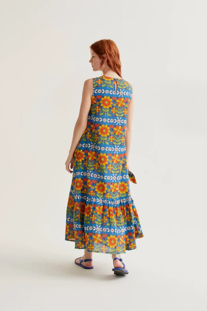 Short dress with Bamboo Blue print COMPANIA FANTASTICA